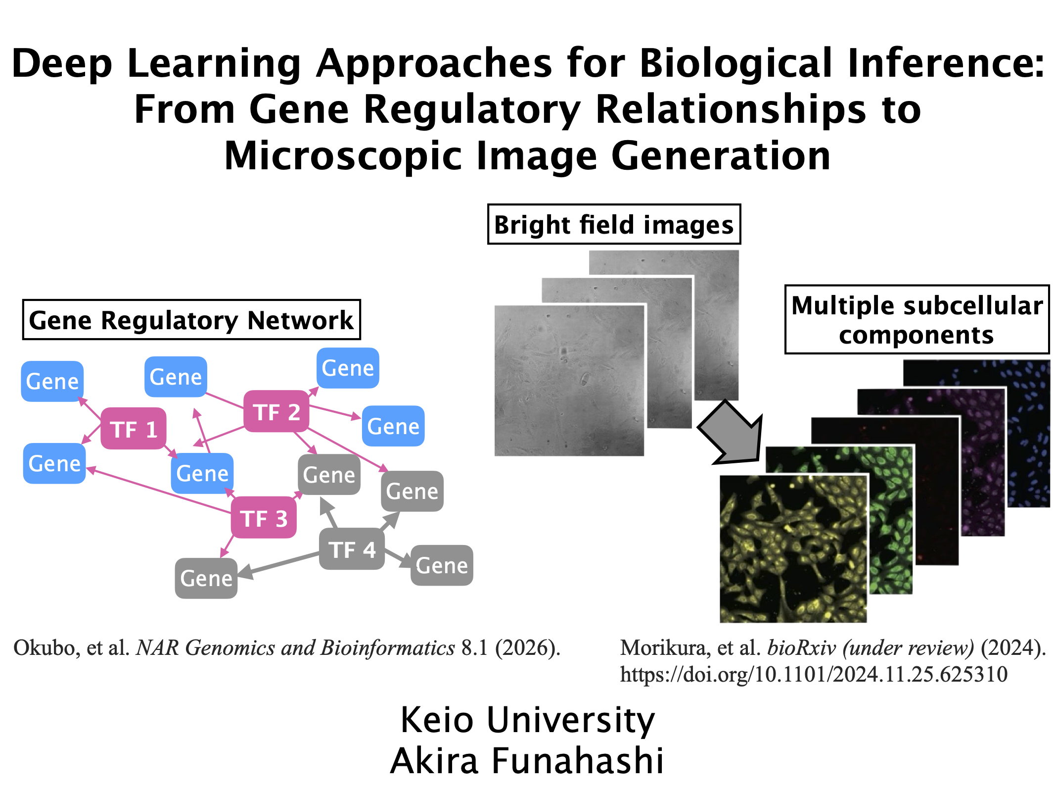 Akira Funahashi was invited to deliver talk at the JST CREST Symposium Integrating Continuous & Discrete Data & Structures: From Mathematical Basis to Biological Applications. His talk title was "Deep Learning Approaches for Biological Inference: From Gene Regulatory Relationships to Microscopic Image Generation".